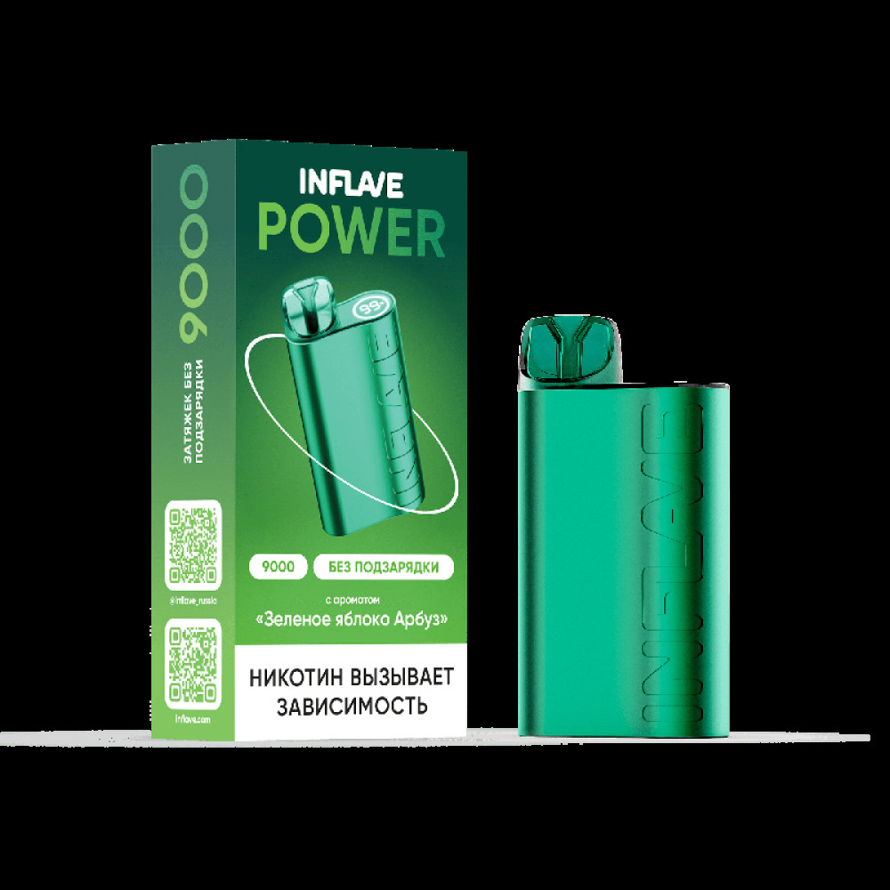 Электронная сигарета INFLAVE POWER 9000 затяжек Зеленое Яблоко Арбуз - купить в Краснотурьинске